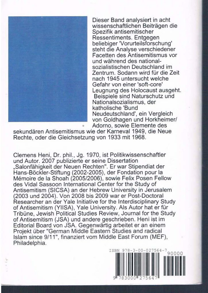 [ii] Shoah Remembrance and New Anti-Semitism. Derealization, Universalization, and Trivialization of the the Holocaust and Anti-Semitism, in: Vĕra Tydlitátová/Alena Hanzová (ed.): Reflections on Anti-Semitism. Anti-Semitism in Historical and Anthropological Perspective, Pilsen 2008: The Center for Middle Eastern Studies, pp. 26-34